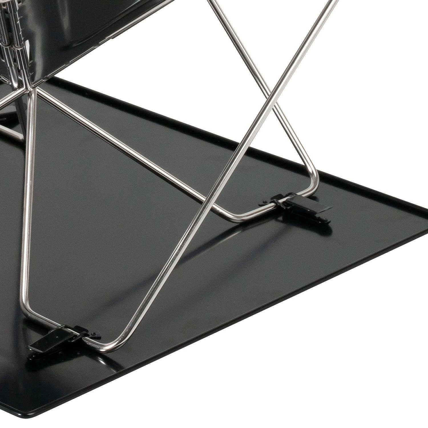 The cast iron trivet provides a flat base for the coals to sit as well as increasing airflow for your heat source while the steel base plate acts as a heat shield and will catch any falling embers and makes for an easy clean up.Â