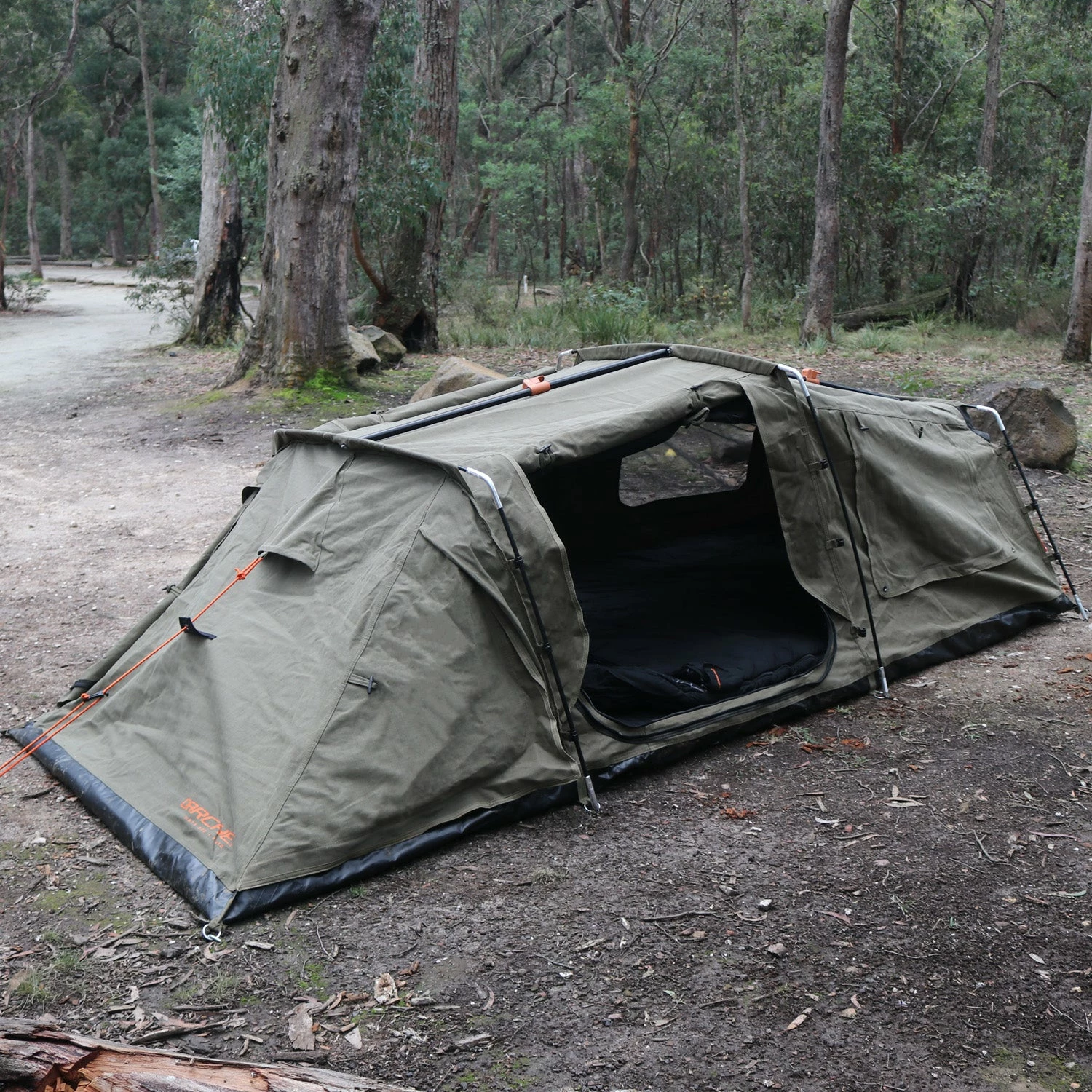The Dirty Dee Plus + swag is made from premium 420gsm ripstop polycotton canvas with an impressive 800mm waterhead rating. There’s also internal seam sealing and a reinforced, heavy-duty 600gsm PVC bucket floor to keep you dry in those rainy conditions. It comes with a premium quality, high-density 70mm foam mattress with a removable cover. The canvas swag bag is perfect for storage and protection while you’re on the go – just throw it in the back of the car or on the roof rack and get on the road.Â