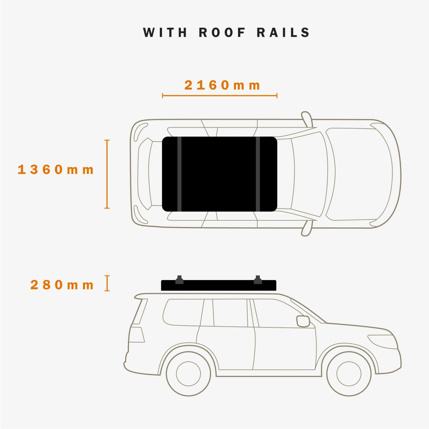 With roof rails accessory kits available (sold separately), the Ridgeback delivers everything you’ll ever need in a hard shell roof top tent and more. The included mounting brackets suit most commercially available flat roof rack or roof rail systems.Â