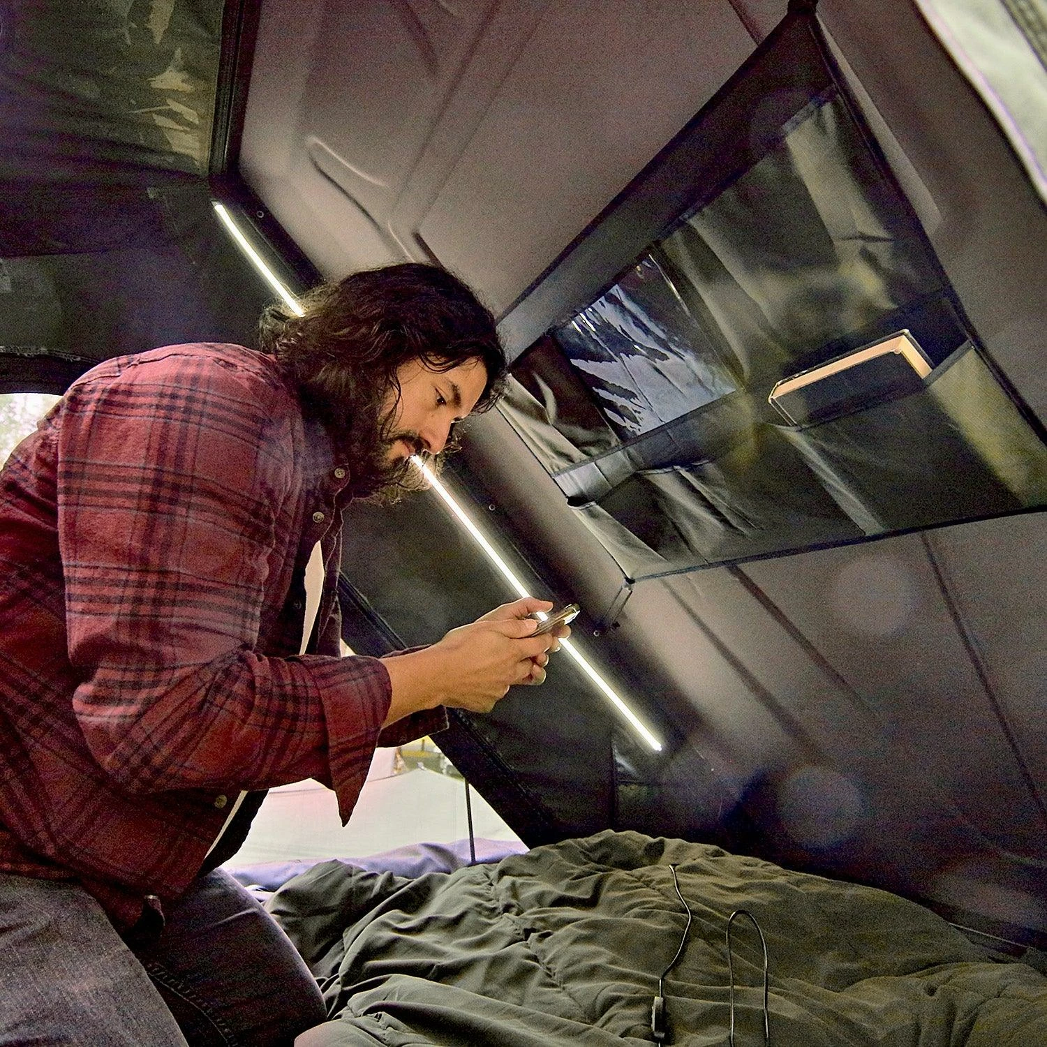 The interior is full of innovation too, including a plush 55mm memory foam mattress with a removable cover and water-resistant base, plus a 10mm high rebound anti-condensation mat that will give you the most comfortable night’s sleep you’ve ever had on the road. The interior also features internal USB powered LED lighting that has been laboratory tested to ensure compliance with all Electromagnetic Compatibility and User Safety standards.