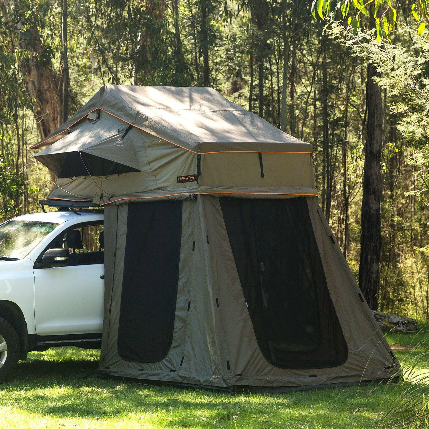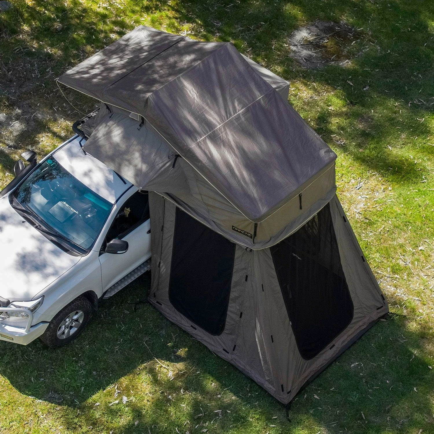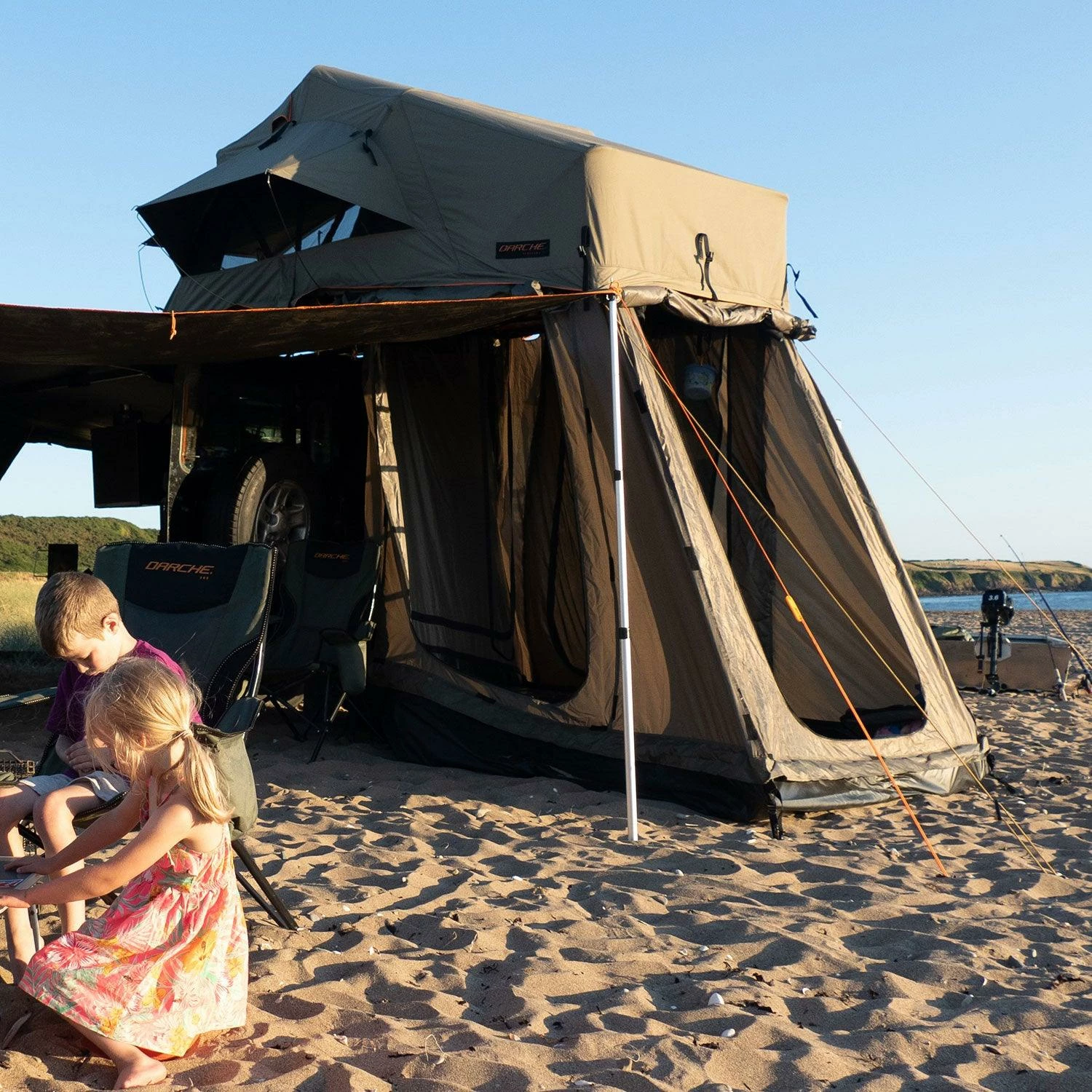 Enjoy some extra shelter on your next open road adventure with a Roof Top Tent Annex. Designed to suit your DARCHE Hi-View 1800 Roof Top Tent, you can create additional privacy, store your gear or use it to extend the sleeping quarters for the kids or extended family. Simply attach the annex to the base of your DARCHE RTT with the sail track and zip and youÂ’re set for all conditions.