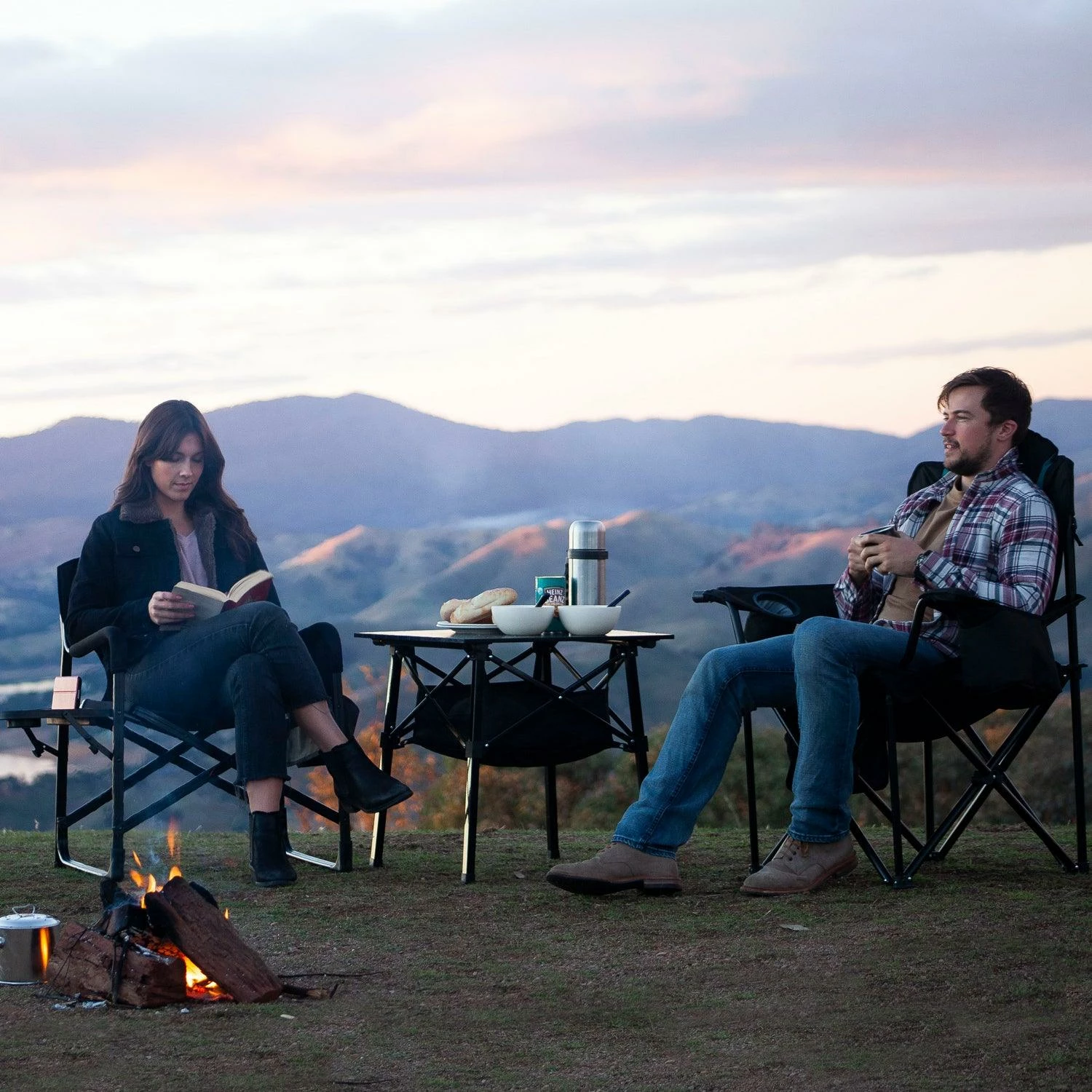 The DARCHE® Kozi Series Side Slat Table is the perfect multipurpose camping table. This compact folding table is ready in under a minute and includes a heat-resistant aluminium slat top in a matte black finish.