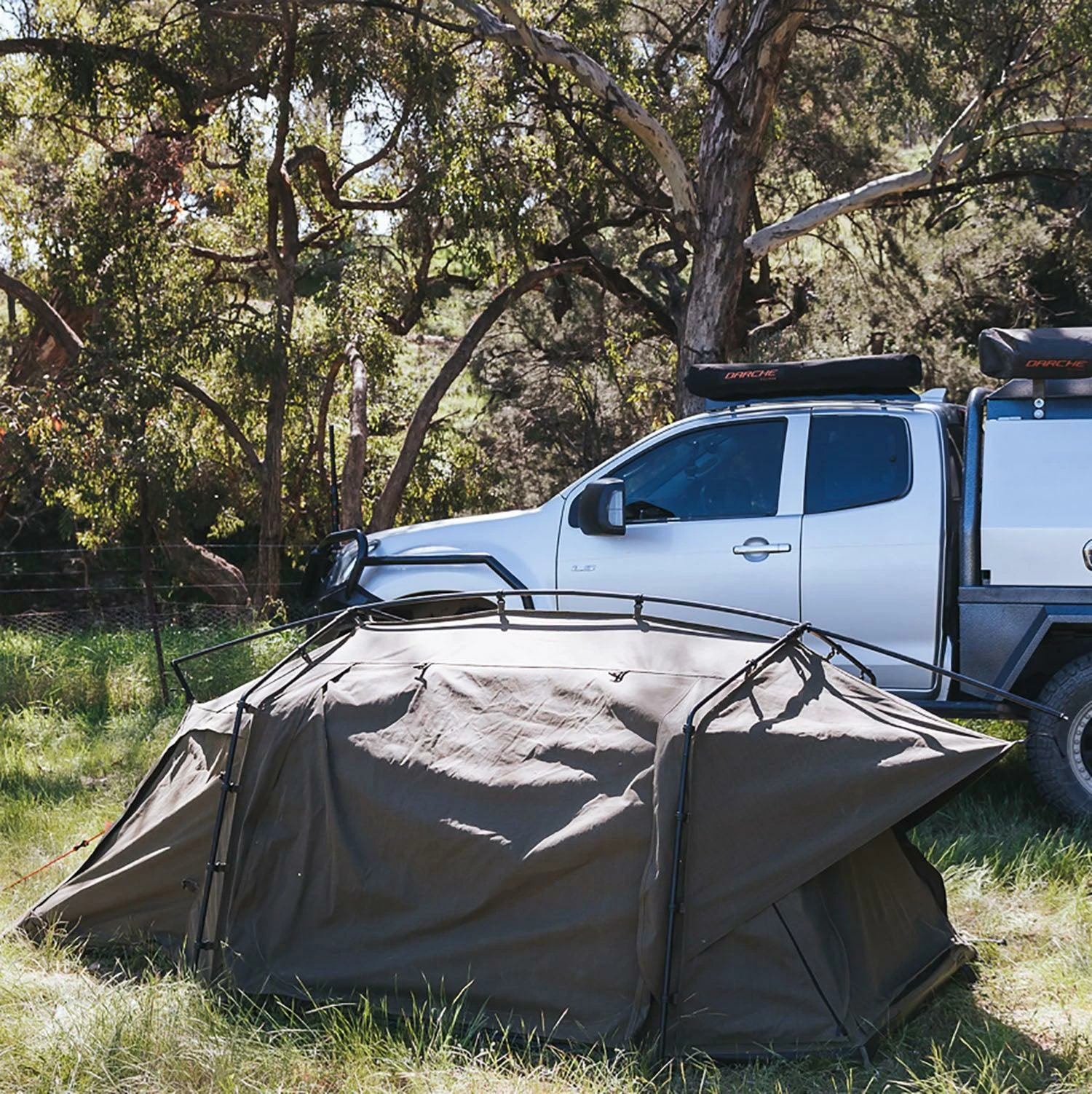 This impressive swag combines the space and comfort of a tent with the convenience and sturdiness of a single skin canvas swag and includes a built-in Hutch® for extra storage! With all of your favourite Nebula features, this premium edition packs a punch in terms of space and storage with the inclusion of the Hutch® compartment to store your gear.