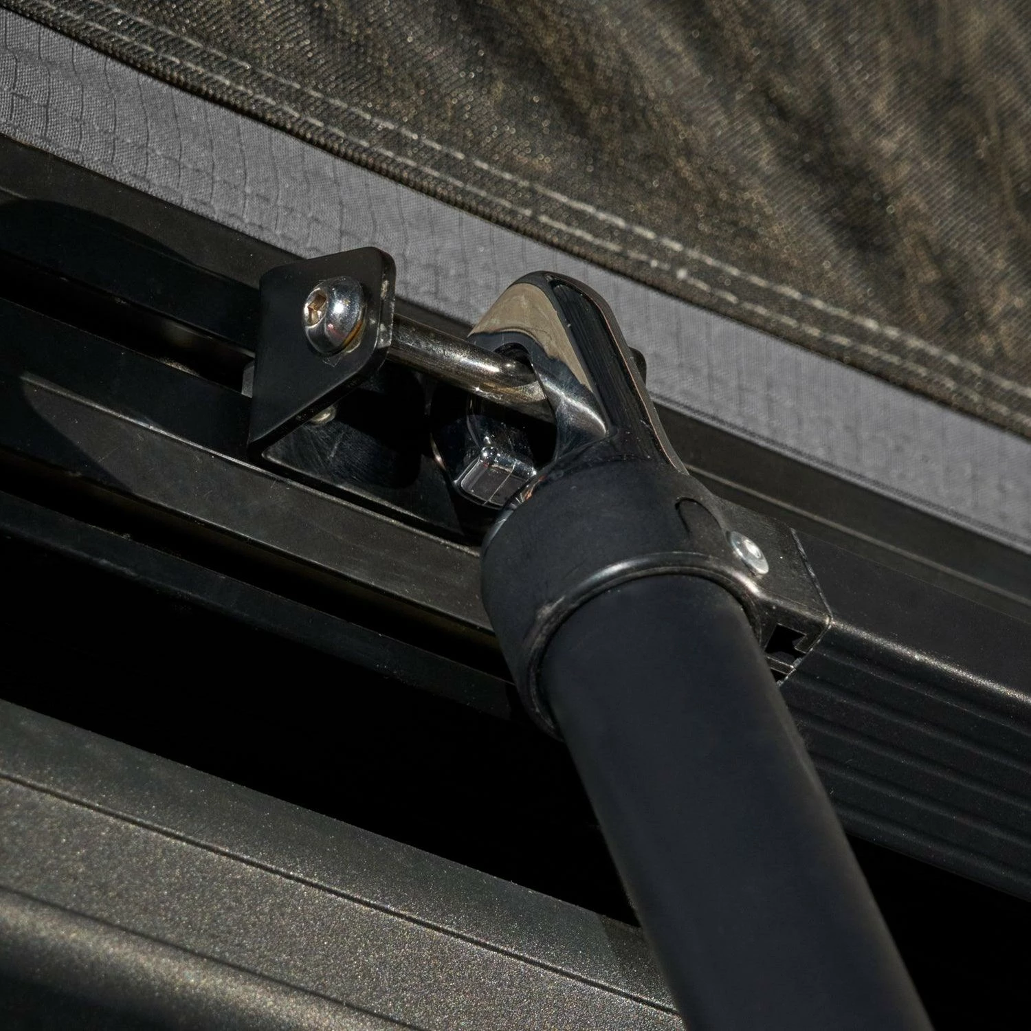 The Ridgeback body tent is made from premium 280gsm Ripstop Recycled Polyester Oxford. This tent has an impressive 3000mm water rating, high profile automotive rubber weather seals, internal seam sealing and a removable fly that will keep you dry in extended rainy conditions With roof rails accessory kits available (sold separately), the Ridgeback delivers everything you’ll ever need in a hard shell roof top tent and more. The included mounting brackets suit most commercially available flat roof rack or roof rail systems. Make sure to check the weight rating and suitability of your roof rack and vehicle with appropriate manufacturers prior to purchase. We recommend professional installation through your local 4WD centre or ask your DARCHE dealer for advice about installation.