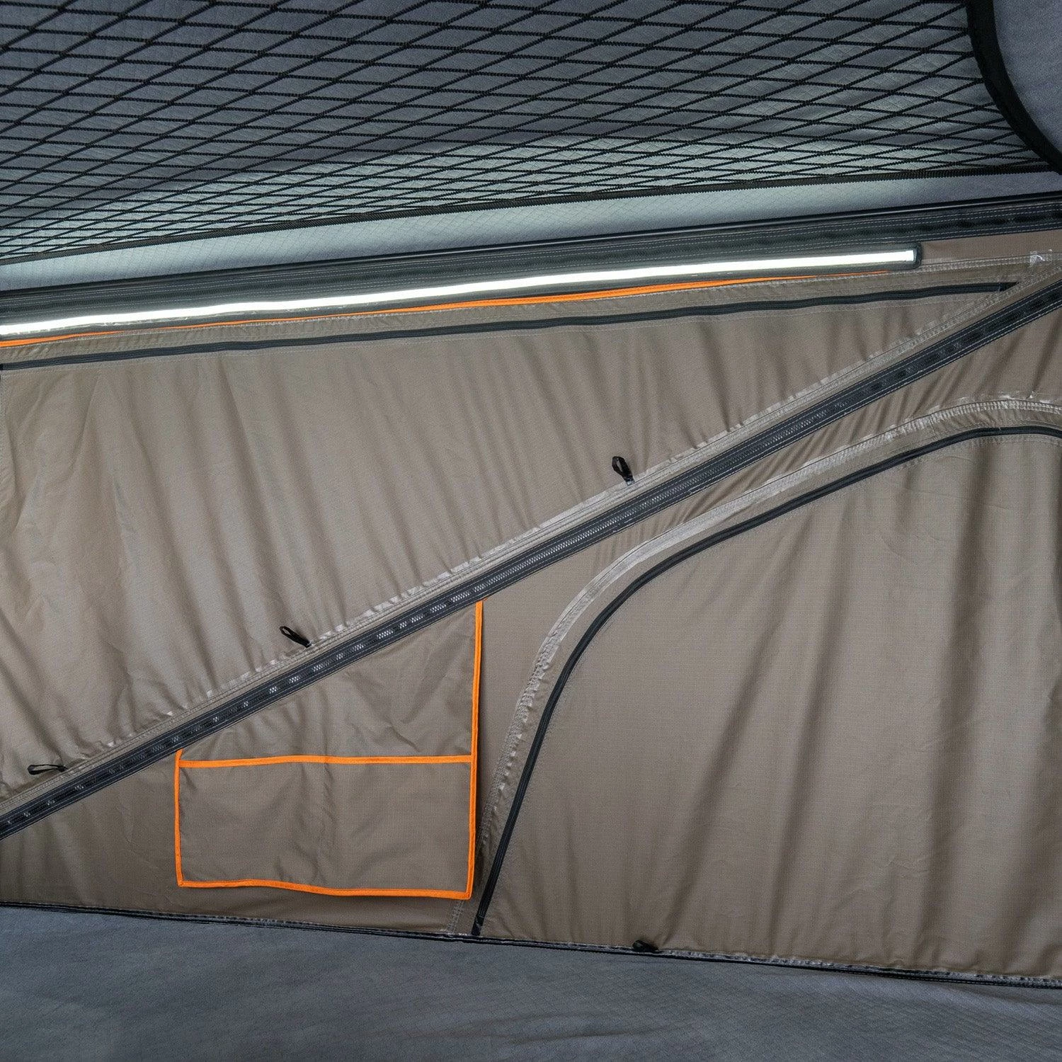 The tent body is made from premium 280gsm Ripstop Recycled Polyester Oxford and features an impressive 3000mm waterhead rating, high profile automotive rubber weather seals, internal seam sealing and a removable fly that will keep you dry in extended rainy conditions