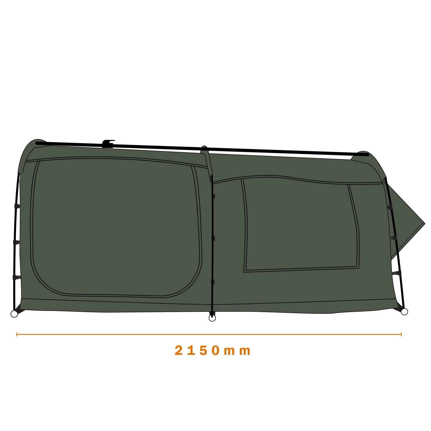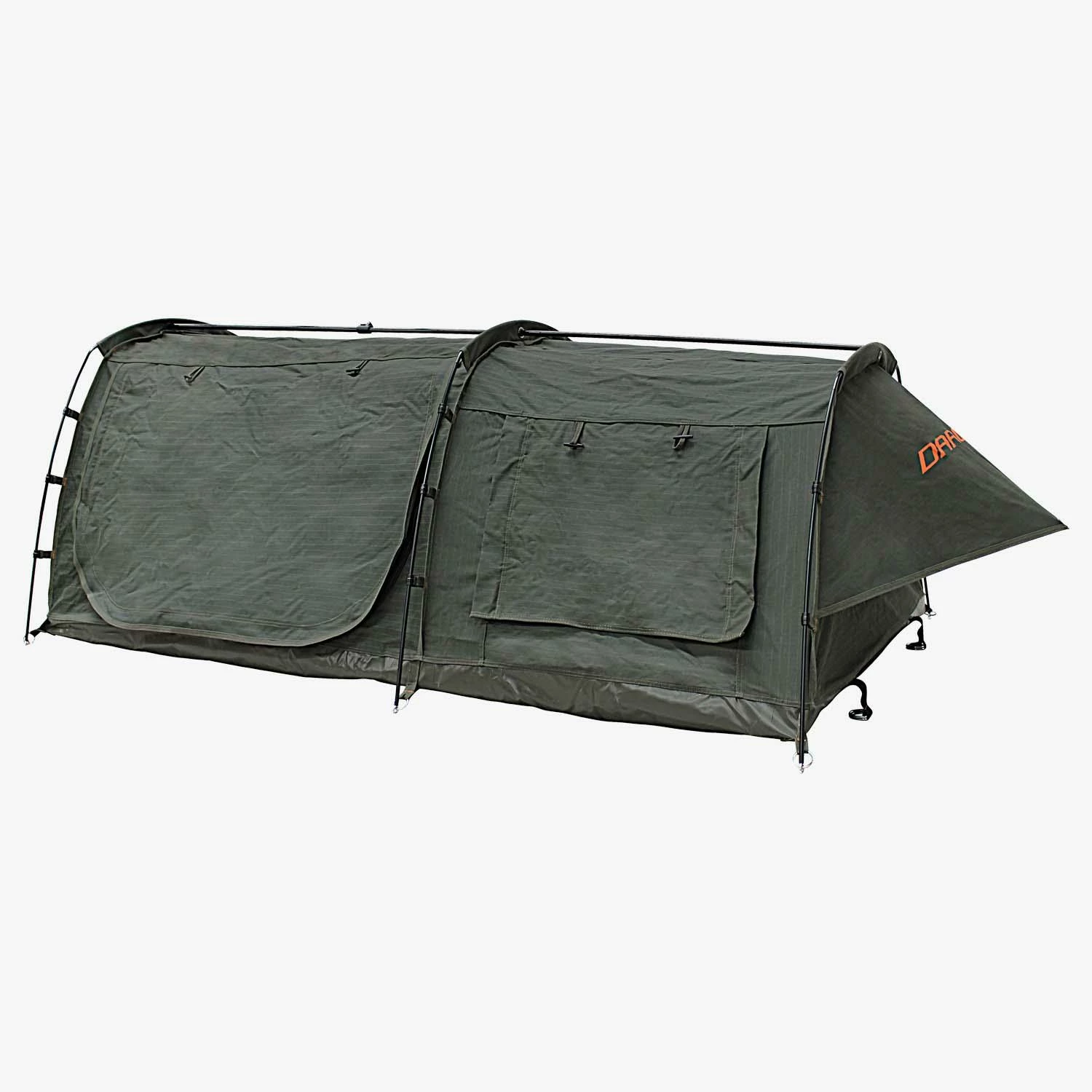 With the toughest canvas on the market, the Max-Treme® range is built to weather all conditions. The wax coated Max-Treme® canvas offers a 800mm waterhead rating. There’s also internal seam sealing and a reinforced, heavy-duty 600gsm PVC bucket floor to keep you dry in those rainy conditions. This swag includes a premium quality, high-density 70mm foam mattress with a removable cover, making for a great night’s sleep and an easy clean up at the end of a long trip. The Ridgedome can also be paired with the Darche Hutch™ or Hutch Lite™ for additional storage on your next touring adventure.