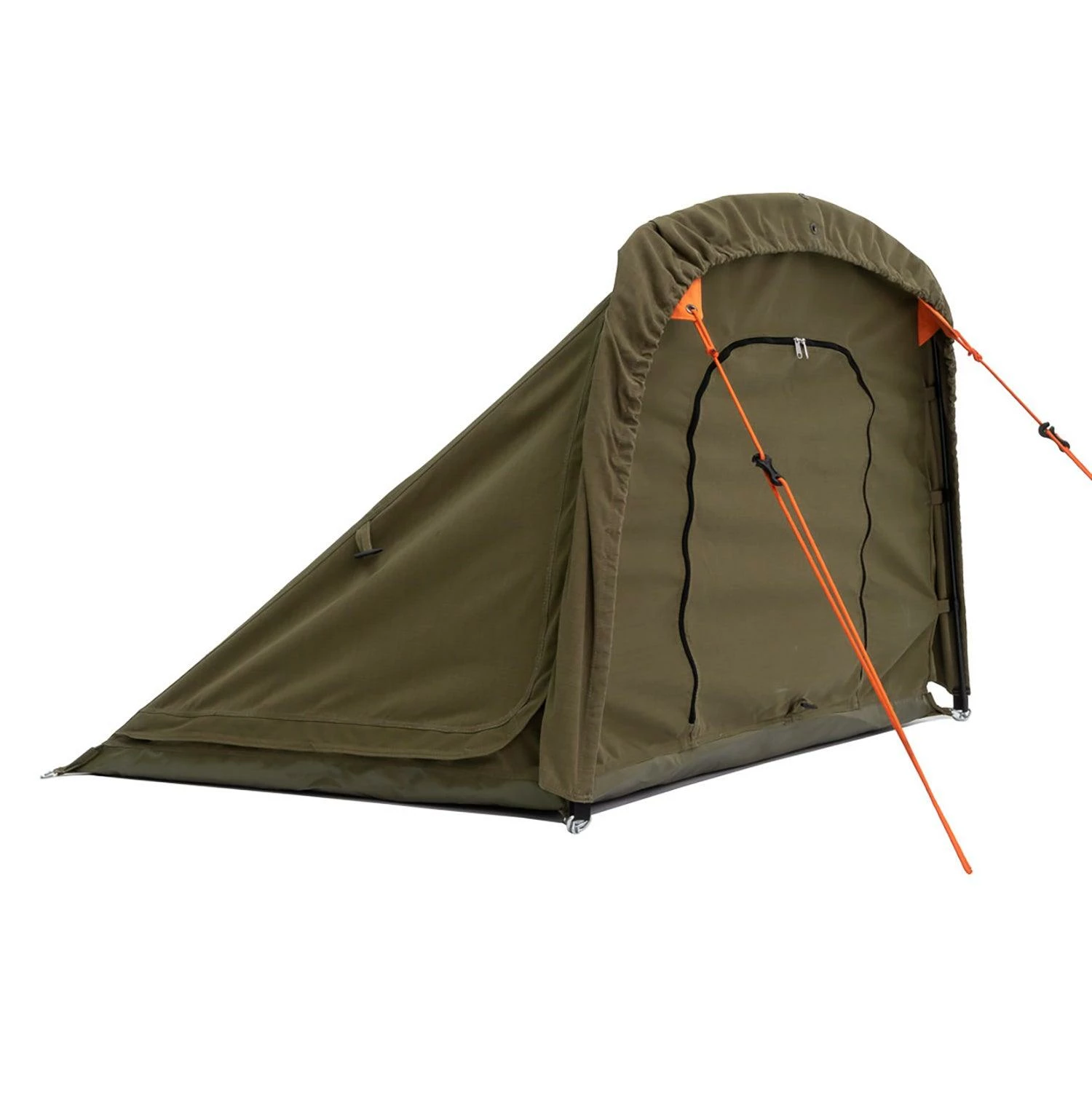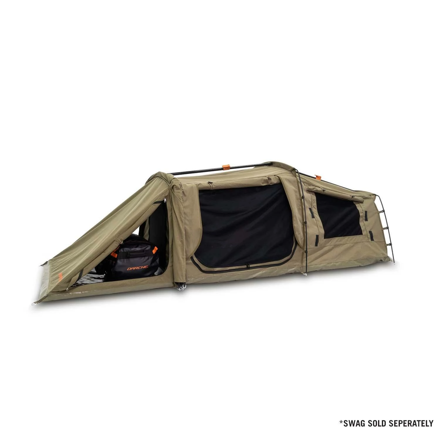 The DARCHE HUTCH® adds an additional storage solution to your DARCHE Swag and keeps your gear dry and sheltered. The DARCHE HUTCH® can be attached to your swag or can be set up as a free standing unit. Made with strong and durable 420gsm Ripstop Polycotton Canvas.
